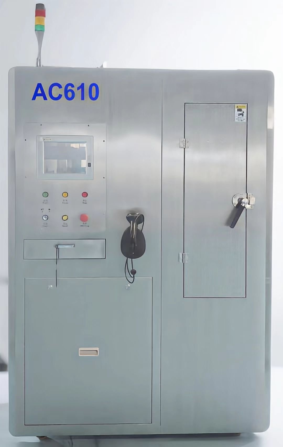 The AC610 is an off-line PCBA/SIP cleaning machine, mainly used for the automatic cleaning of flux on the bottom of high-precision PCBA and SIP modules, as well as the bottom of PCBA with high-precision components such as BGA, CSP and QFN. It is suitable for various flux cleaning requirements. The machine adopts the process flow of water-based cleaning fluid cleaning, DI water rinsing and hot air drying. Parameters including cleaning time, rinsing time, drying time, cleaning fluid temperature, rinsing water temperature, hot air drying temperature, rinsing times, cleaning spray pressure and rinsing spray pressure can all be set and adjusted as required. It adopts a vertical spray cleaning method, which is ideally suitable for flux cleaning of PCBs with fine pitch and flip-chip devices. The machine is mainly composed of a cleaning system, a rinsing system, a drying system, a filtration system and a control system.