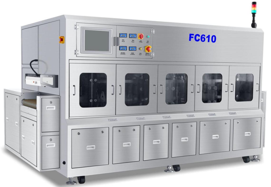 FC610 Flux Residue Cleaning Machine The FC610 is specially designed for the automatic cleaning of residual flux after BGA solder ball attachment. Equipped with a double-layer Kevlar mesh belt conveying system and adopting an upper and lower water spray cleaning method, the machine leverages heated DI water and the mechanical force of jetting to soften, decompose, peel off and remove flux residues until the surface is completely clean during the cleaning and rinsing stages. It is followed by a hot air knife drying section, which removes residual moisture from the BGA solder ball attachment substrate to achieve thorough drying.