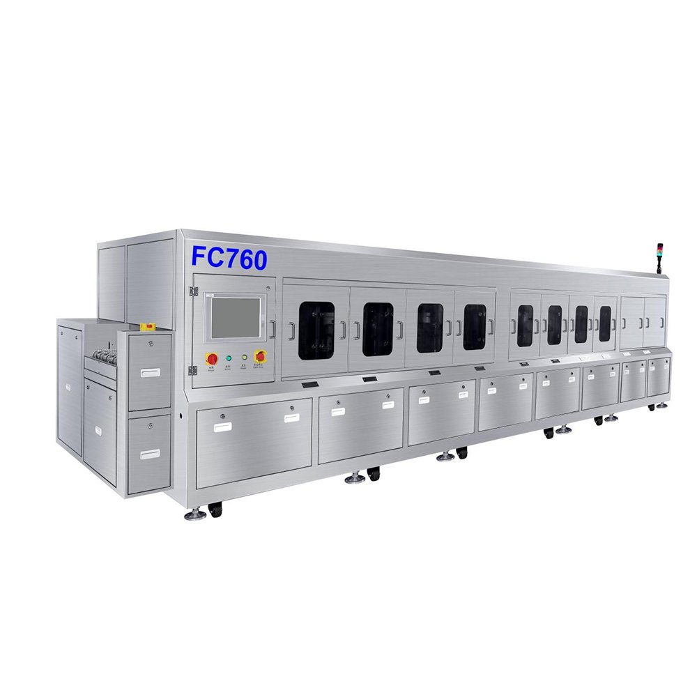 FC760 is specifically designed for automatic cleaning of advanced packaging fluxes such as FCBGA/FCSCP/QFN. It can also be used for automatic cleaning of IC carrier boards.